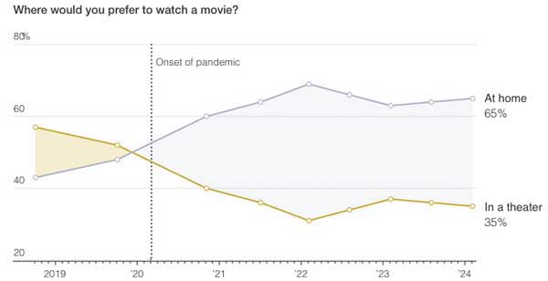 WSJ: How Going to the Movies Is Changing, in Charts ; Hollywood’s new normal involves fewer wide releases, more big screens and novelty popcorn